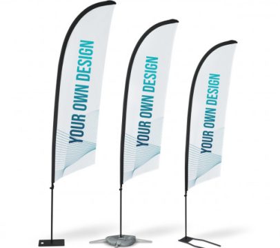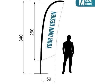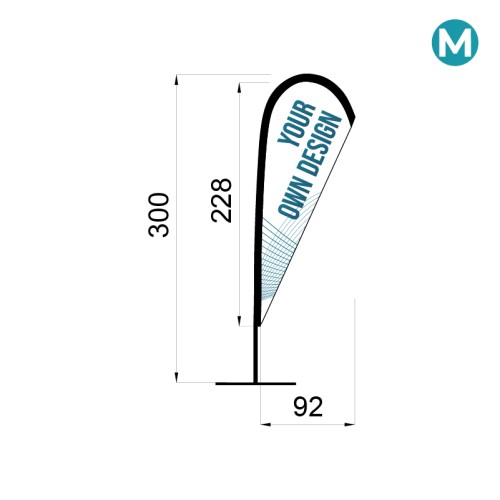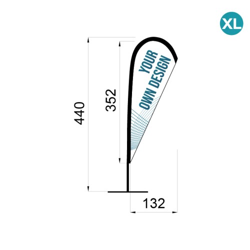 El Fly Banner Gota, también llamado bandera lágrima o Beach Flag TearDrop, se distingue por su silueta en forma de gota invertida, que no solo le da un aspecto moderno, sino que también mejora su resistencia al viento.