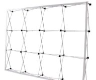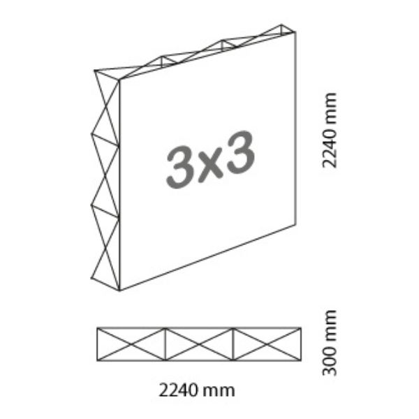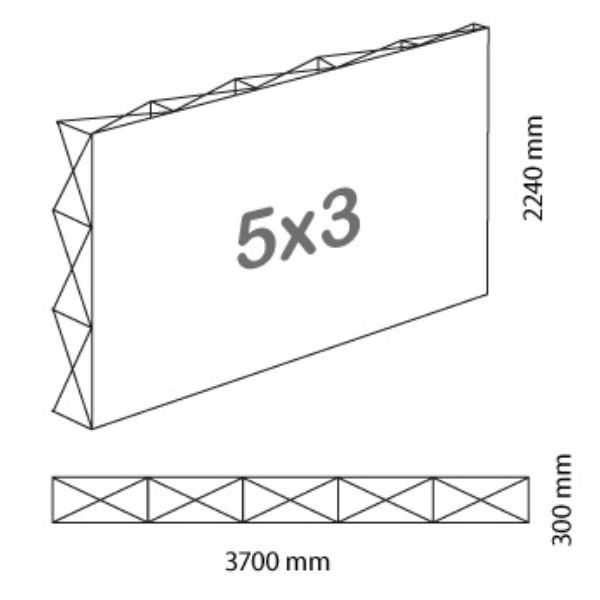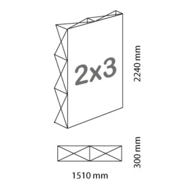 Este display permite cubrir tanto el frontal como los laterales con una sola gráfica, y también ofrece la opción de impresión a doble cara añadiendo velcro adicional en la parte trasera. Su gran superficie visible lo convierte en un soporte perfecto para eventos corporativos, ferias, ruedas de prensa, congresos o como photocall.