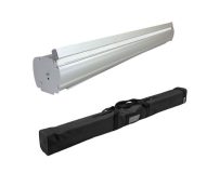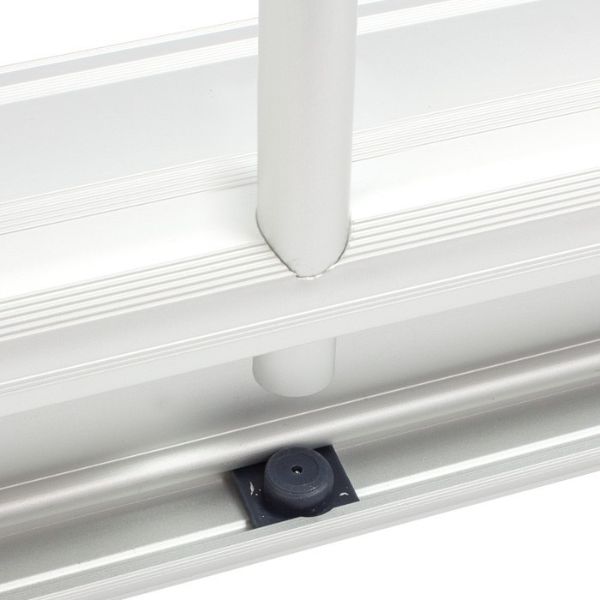 Su estructura se monta de forma rápida y sencilla, sin necesidad de herramientas. Además, incluye un estabilizador que mejora la firmeza del display incluso en espacios con tránsito de personas. Es completamente desmontable y se entrega con una bolsa de transporte acolchada para facilitar su movilidad.